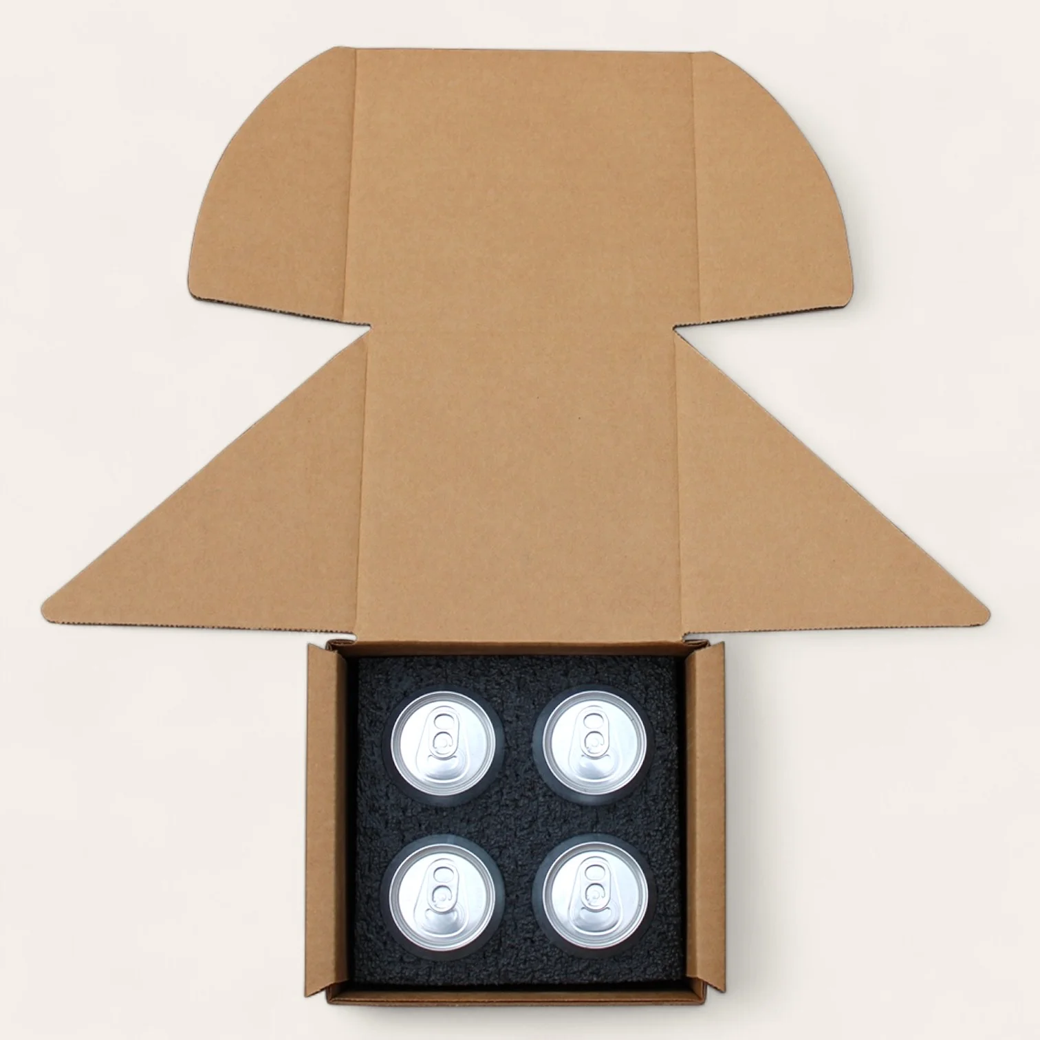 Do you have less than 4 cans to ship? Don’t worry! The design of the 4 Pack Shipper allows you to safely ship from 1 to 4 cans. The extra space of the empty can slots will not be a problem, and the cans you ship will still stay snug and protected.